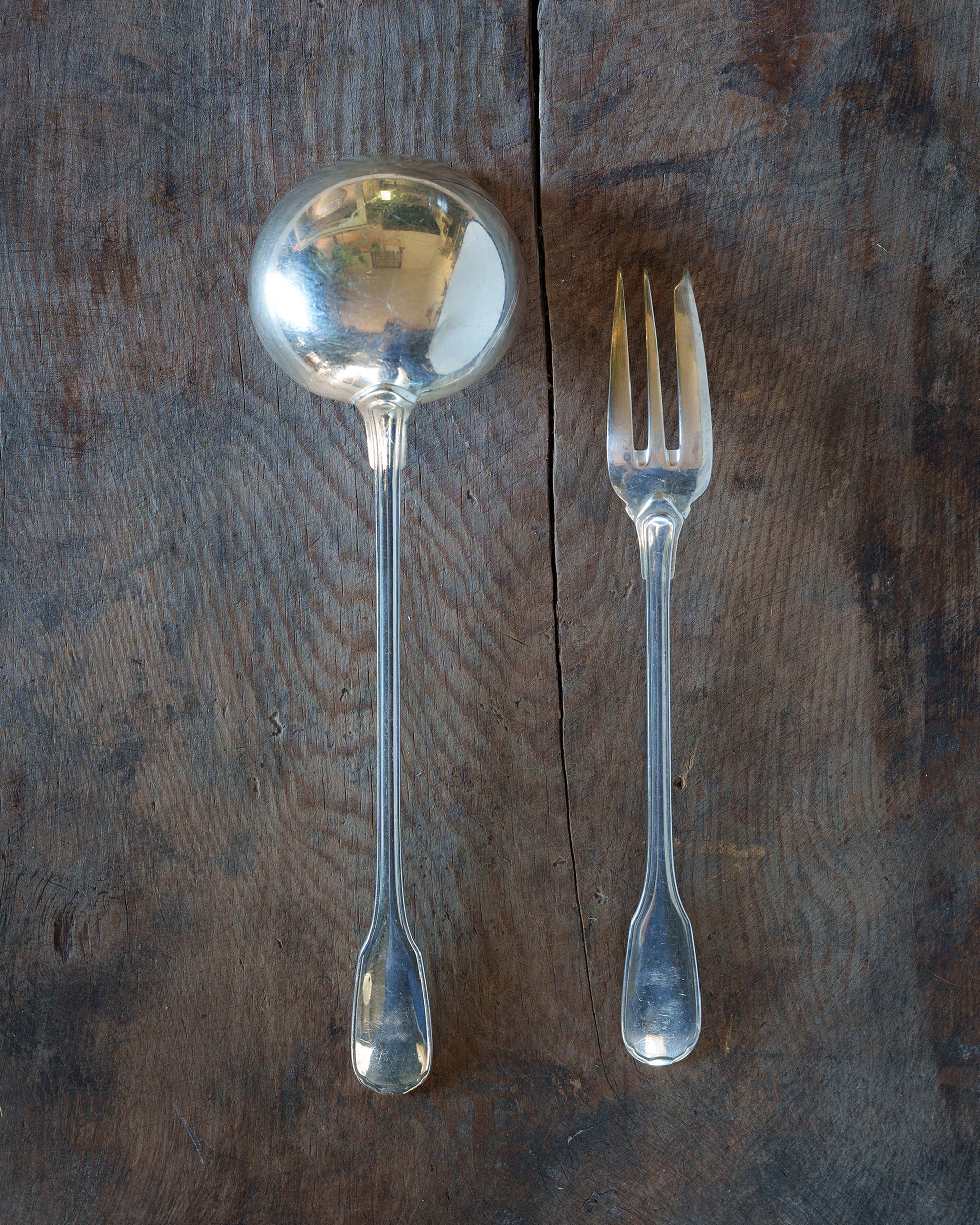 This cake fork and cream spoon set are by Les Six favourite Christofle.
