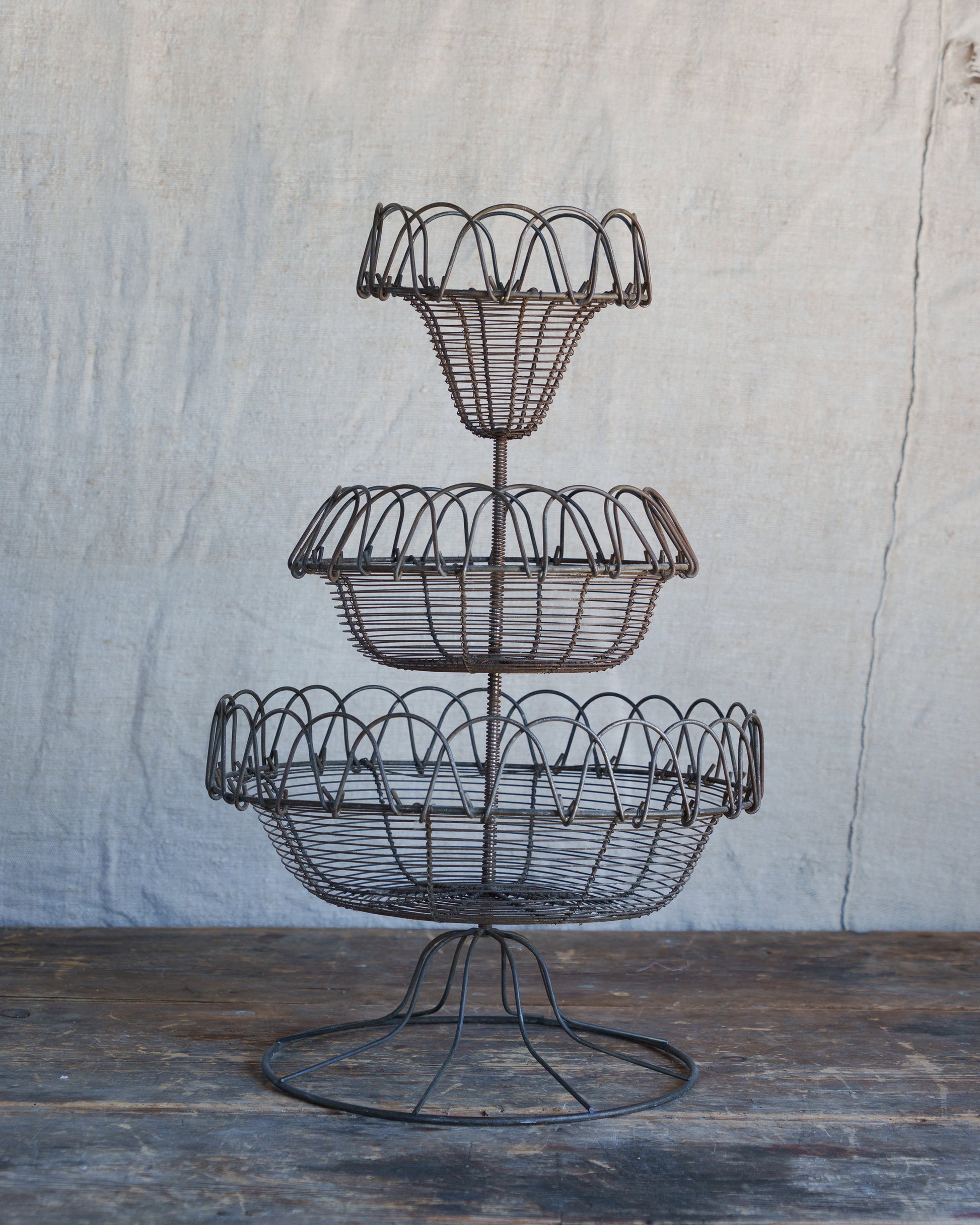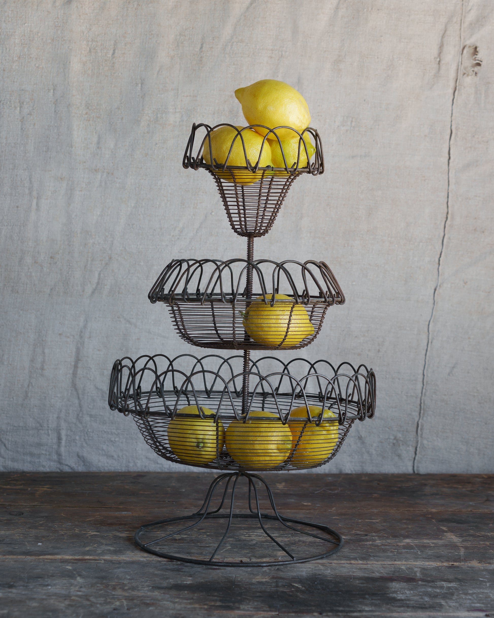Sourced at a once monthly brocante Les Six love, this antique French wire fruit basket is a statement piece with stories to tell.