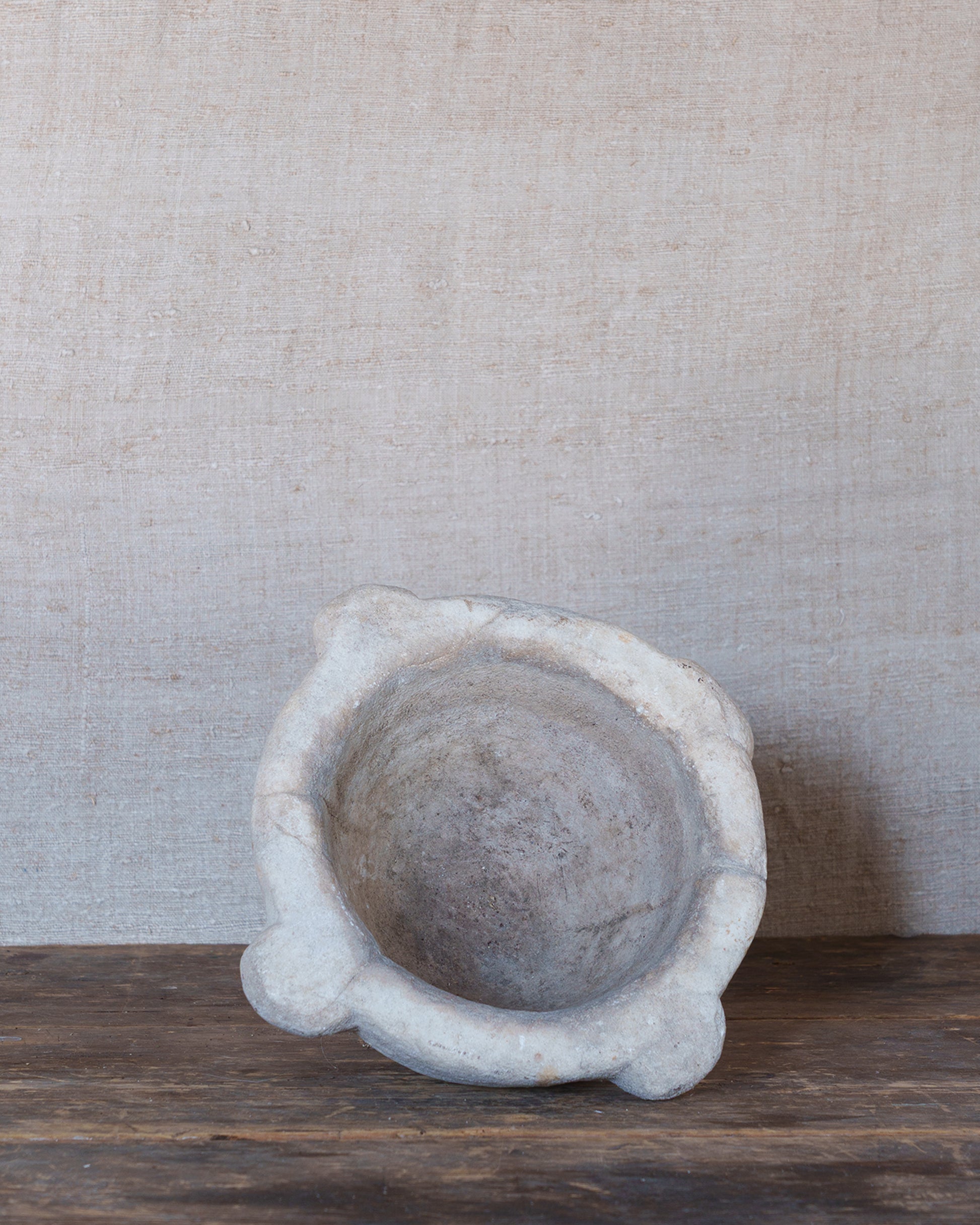 Sourced at a Saturday morning brocante favourite, this antique French stone mortar while once used to ground herbs and spices, can be used throughout the home as a statement piece.