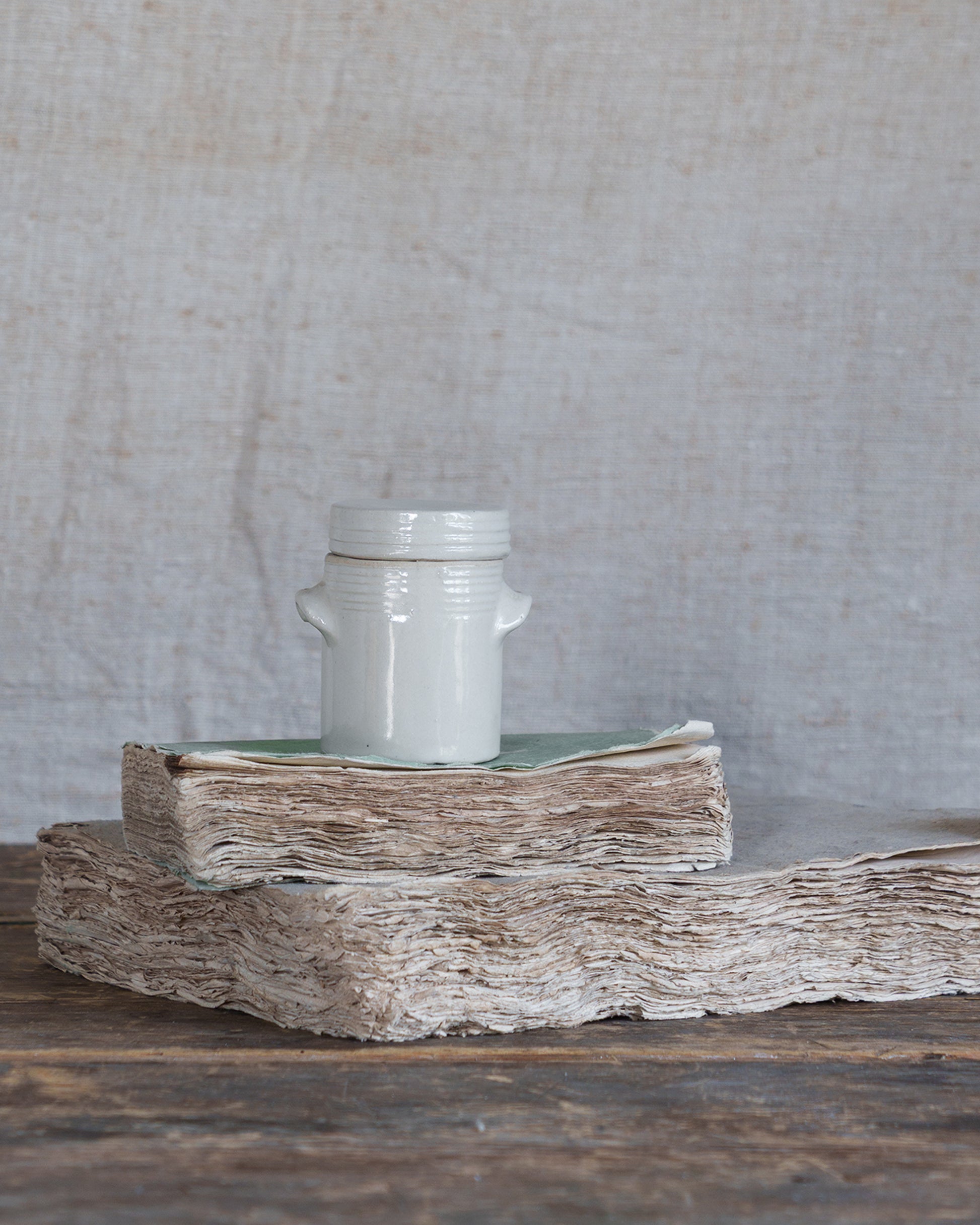 This vintage French lidded mustard pot is perfect for condiments.
