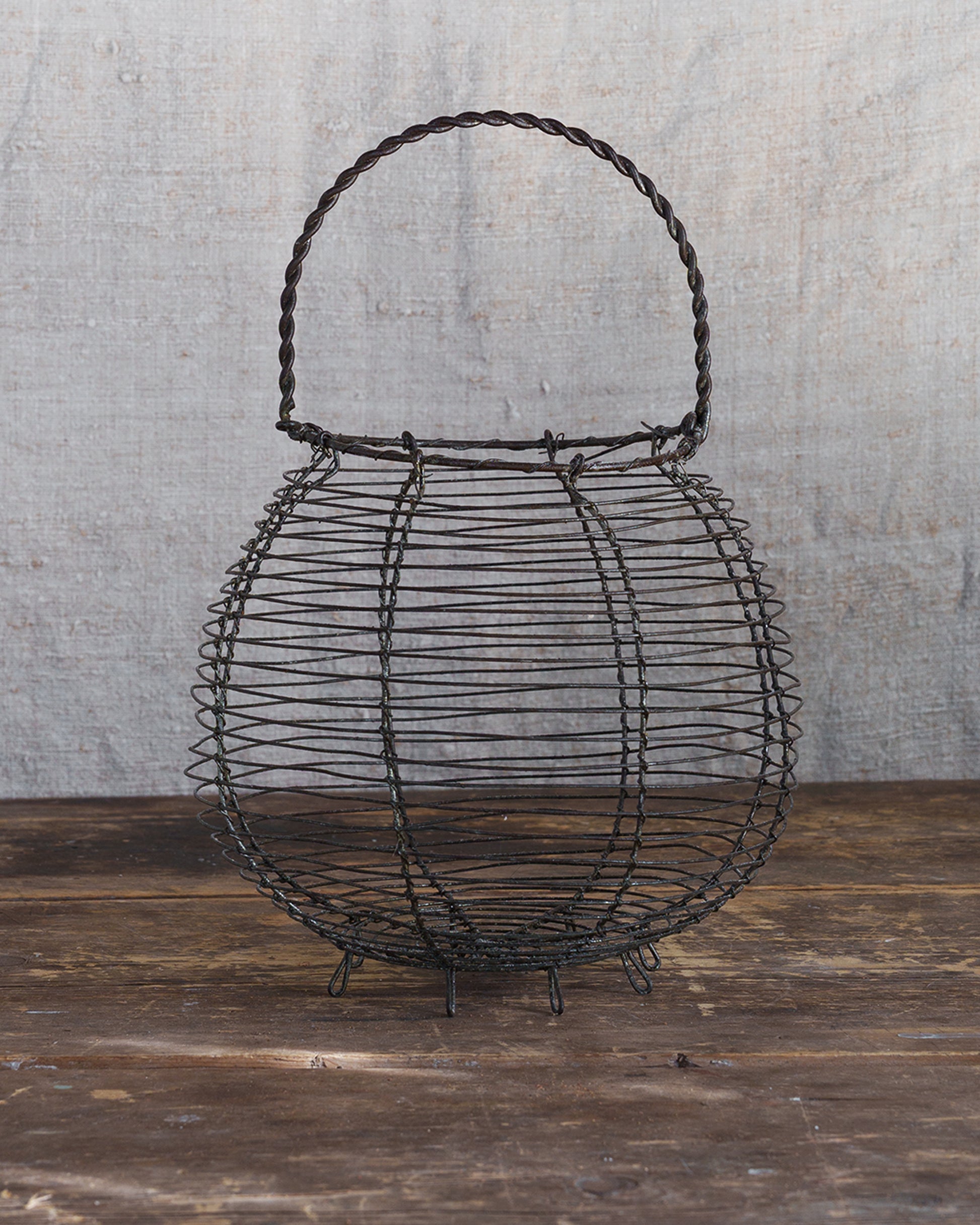 This large vintage French wire salad basket is perfect for storing eggs, fruits or vegetables on your kitchen countertop.