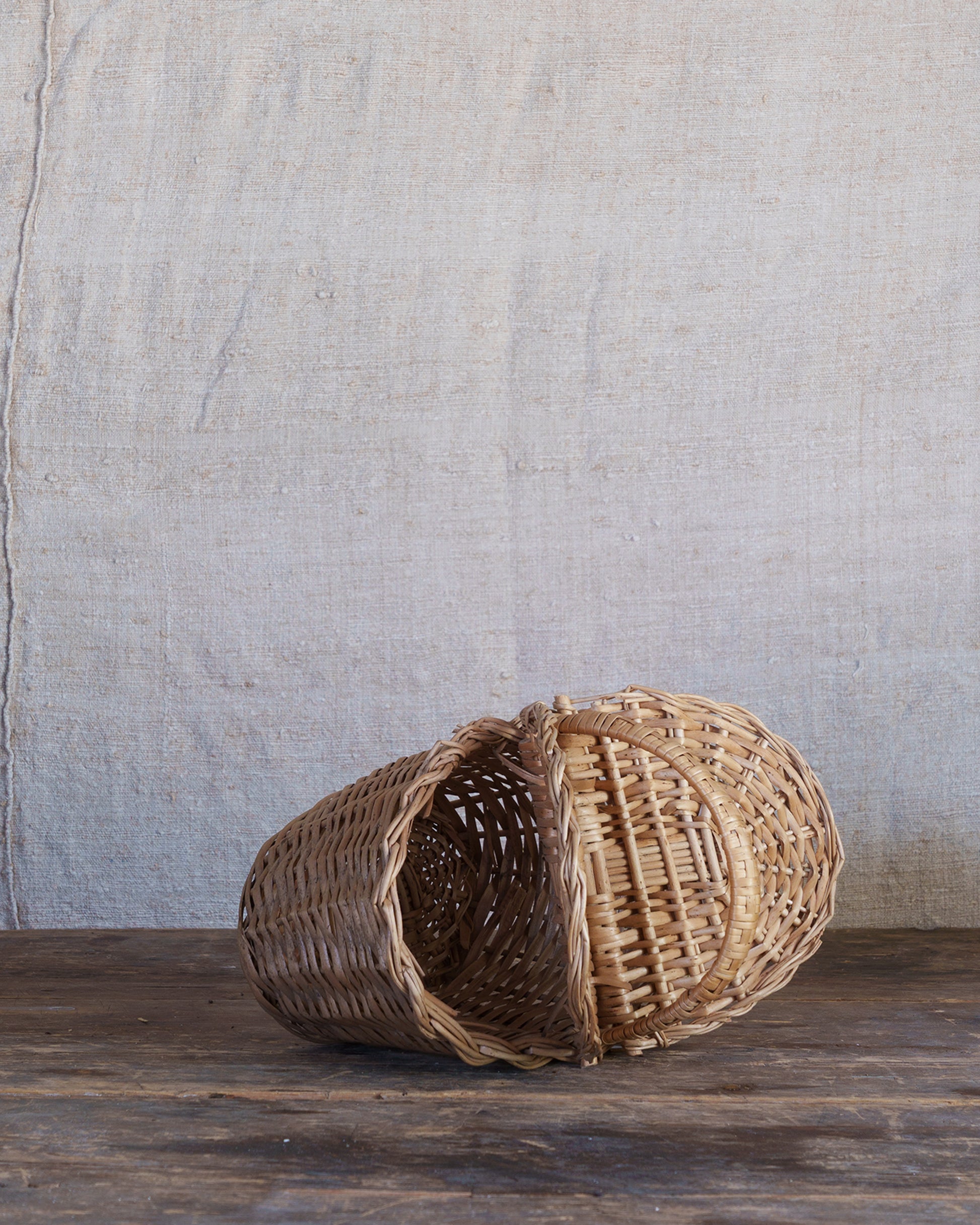 This tiny picnic basket was sourced at a Sunday brocante. Found on an unattended stall, we waited an age for the seller to return, so that we could bring her home.