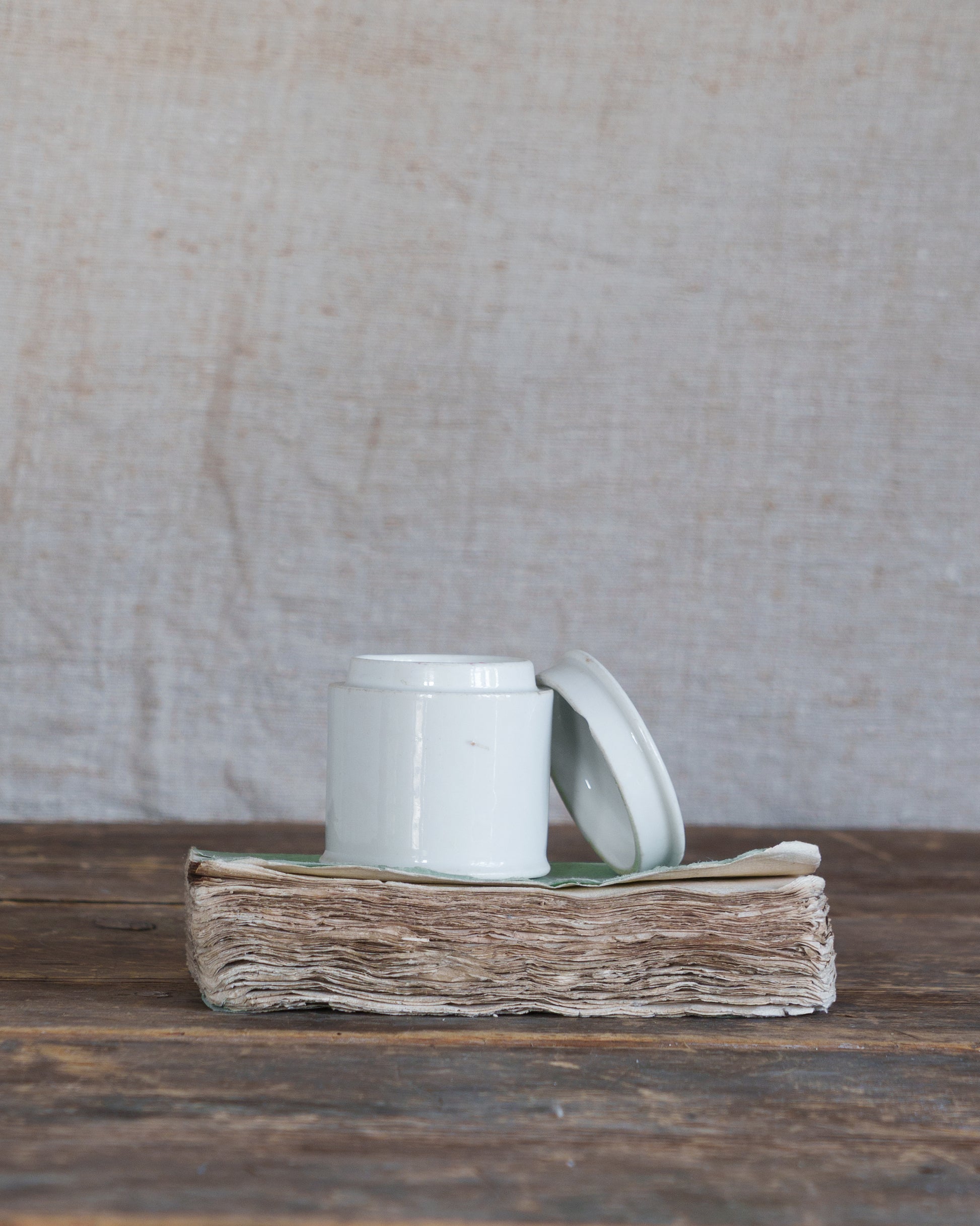 This antique lidded pot makes a great small jar for seasonings you use more frequently, so as to sit on your kitchen table ready for use, or on your kitchen counter.