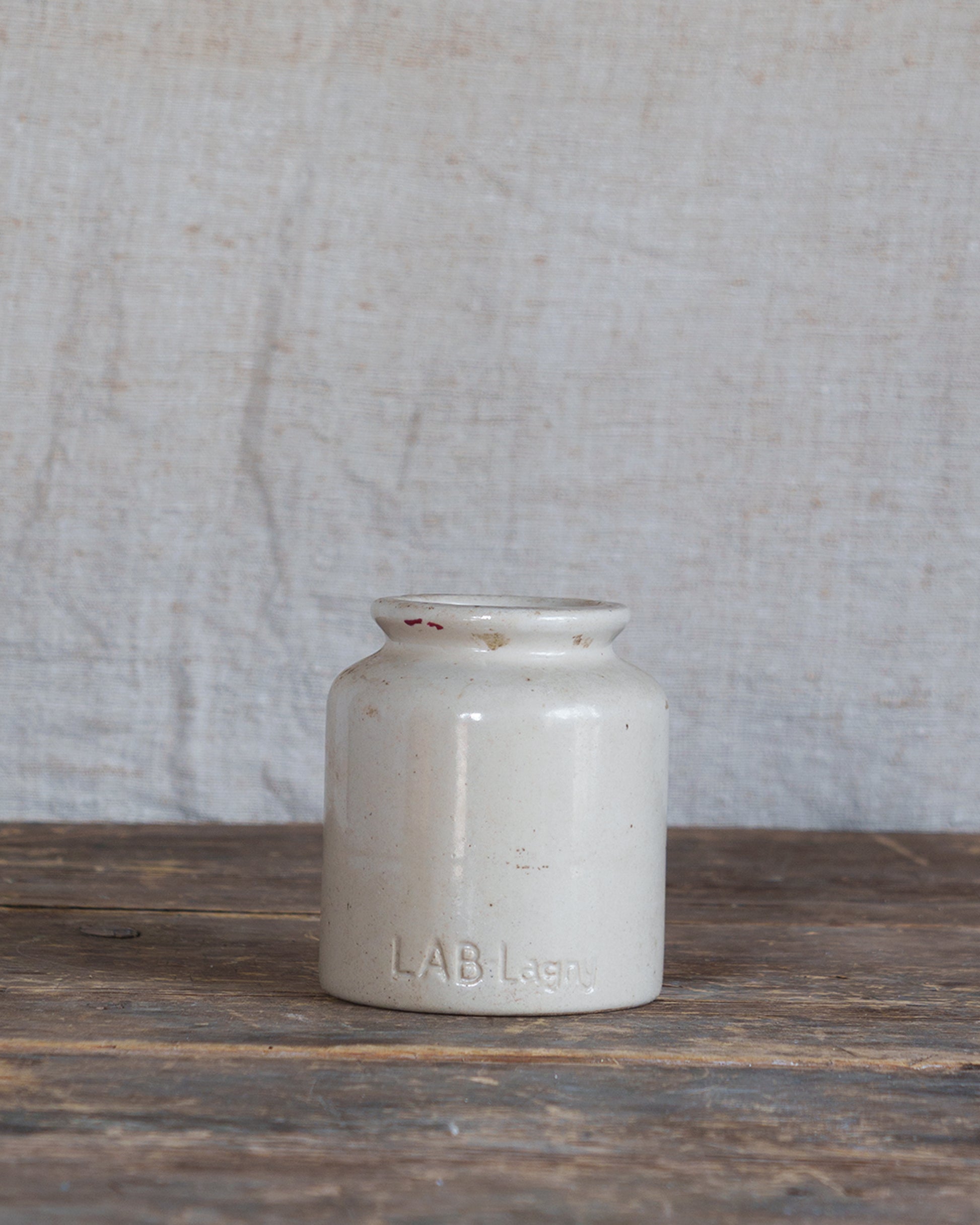 Once used for jam, these vintage French pots make wonderful small storage, all throughout the home.