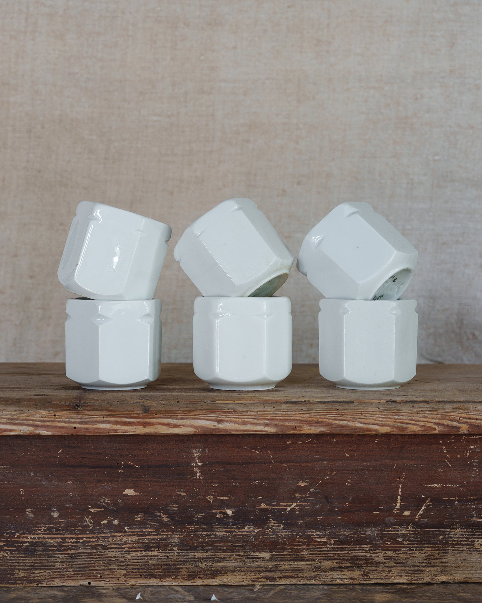 These vintage ironstone yoghurt pots by Yalacta date back to the 1950s.